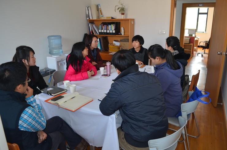 2014年3 月5日 下午,上海财经大学NASPAA-MPA国际认证小组王峰老师、曾纪茂老师、傅凯若老师、惠瑾老师和蒋弘老师赴我校商学院MBA认证办公室考察学习。受到了商学院认证办公室主任刘松鸽老师、商学院教学研究班主任钟鸿钧老师、商学院教学总监王老师、商学院教务总监申老师热情洋溢的欢迎。