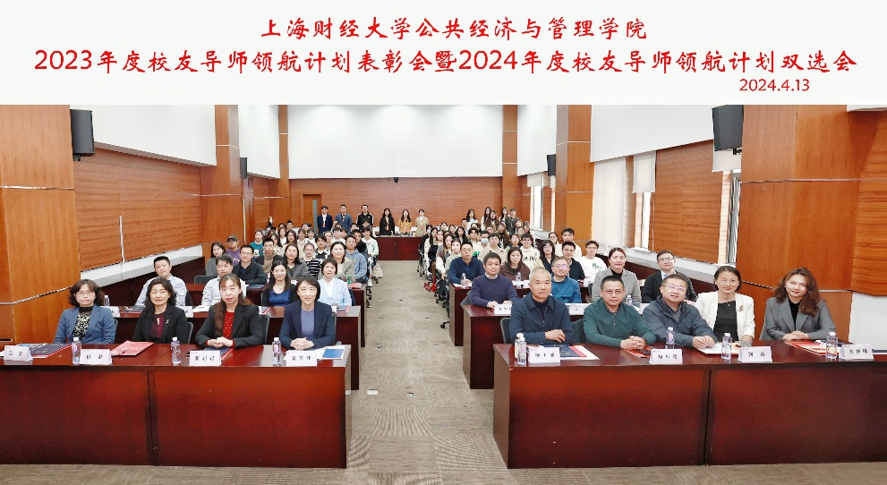 为更好帮助在校学生全面发展,建立健全协同育人机制,2024年4月13日,学院“2023年度校友导师领航计划表彰会暨2024年度校友导师领航计划双选会”在凤凰楼顺利举行。公共经济与管理学院党委书记秦文佳、学院校友会会长杨玉成、秘书长邬咏梅以及20余位领航计划导师和80余位领航计划在校生参加了本次活动。活动由学院校友会秘书长邬咏梅主持。