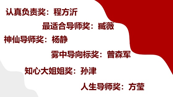 活动创新设置“彩蛋环节”,为导师颁发“趣味奖项”,学院特地收集2023年度领航计划同学的提议,并精心为导师制作贺卡,表达同学们对导师一年来倾心付出和积极帮助的感谢。同学们集思广益,为导师送上“最有耐心奖”、“亦师亦友奖”等等极具创意的趣味奖项,在场导师们收到贺卡后充满惊喜和欣慰,被同学们的真诚和创意深深打动。