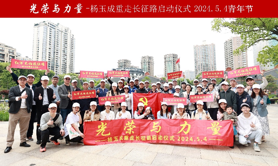 时维五四,序属仲春,申城新天地,聚贤汇英才,共同襄盛举。年华虽逝,激情不灭。寻红色足迹,奋进新征程;梦想秉坚持,犹怀青春梦,重走长征路,再创新辉煌。2024年,新中国成立75周年,中国工农红军长征90周年。在此历史时刻,5月4日,值此伟大的“五四运动”105周年之际,上财公管学院校友会杨玉成会长发起的“光荣与力量 - 杨玉成重走长征路”启动仪式在上海党的一大会址前顺利举行。学校党委常委、统战部部长褚华、学院党委书记秦文佳、学院校友工作委员会主任方芳、滴水湖高金执行院长陈选娟、学院副院长宗庆庆、副书记周巧、校友会副会长刘璇及学生党员代表近20位师生校友参加此次活动,互动旨在引导广大青年学生继承和发扬五四精神,坚定不移听党话、跟党走,争做有理想、敢担当、能吃苦、勇奋斗的时代好青年,在推进强国建设、民族复兴伟业中展现青春作为、彰显青春风采、贡献青春力量,奋力书写为中国式现代化挺膺担当的青春篇章。启动仪式共有近50位社会各界人士热情参与。