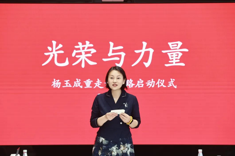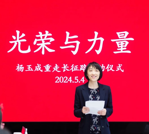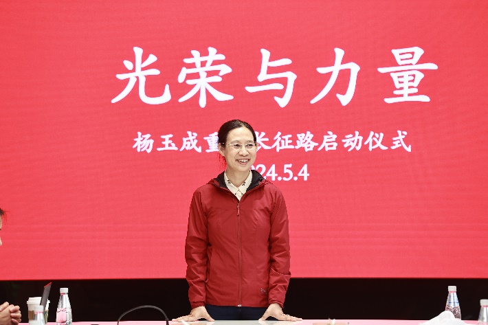 公共经济与管理学院党委书记秦文佳首先致开场辞。结合自己在古田、长汀等地红色研学的经历,秦书记为大家介绍了她眼中的中国革命史的长征奇迹,高度概括了长征精神。她希望同学们面对人生路上的磨难和困境,发扬长征精神,坚韧不拔,克服困难,挑战极限,成就自我。秦书记预祝杨会长重走长征之路圆满成功!