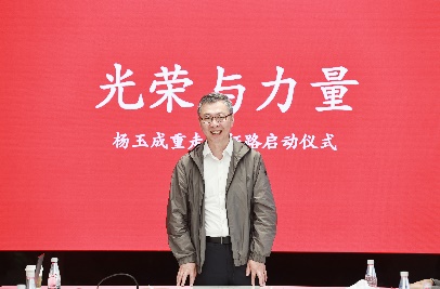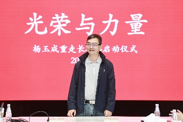 启动仪式进行中,上财刘元春校长也发来“贺电”,对杨玉成会长“光荣与力量”为主题的重走长征路表示祝贺与赞许,预祝活动圆满成功。