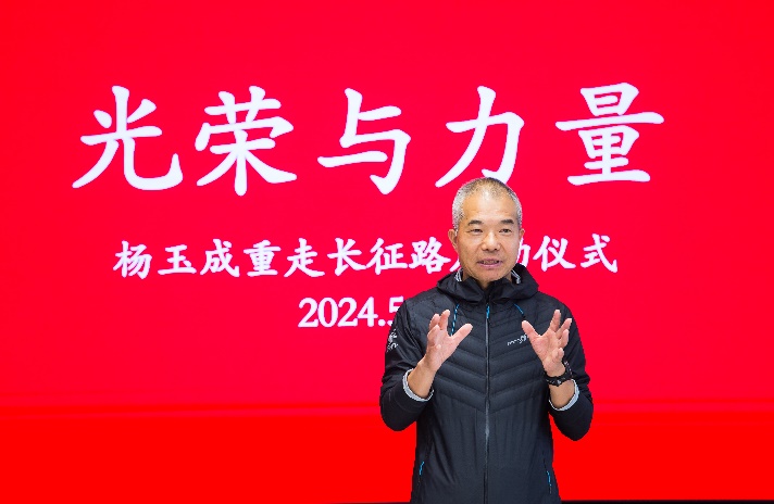 来自新华社上海分社原副社长张小军、机场集团副总裁宋雪枫、中国银联商务董事会秘书陈峥女士及中非合作基金纪尹杰先生,均发表了热情洋溢的讲话,在他们的眼里、口中的杨玉成会长,从十年前开始跑步、跑马、跑百公里越野,到完成全球马拉松大满贯六大赛事,获得六星奖牌,这背后体现的是杨玉成会长持续践行马拉松精神,挑战自我、超越极限、坚持不懈、永不放弃的人生态度和敬天爱人的精神,如今他在六十岁“高龄”发起重走长征路之壮举,大家对此既佩服更祝福,从他勇往直前、超越自我的精神中获得启迪、获得力量,祝愿他的重走之行顺利圆满成功!