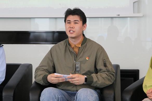 在第二板块“青春·共成长”中,曾获得第十七届“大学生年度人物”提名和上海市大学生年度人物的来自我校2019级行政管理专业本科生的加拉斯·艾德力拜,与来自中信银行、上海税务局和北外滩街道的青年党员们一起围绕习近平总书记对青年的寄语以访谈的形式展开交流讨论。青年学子加拉斯在访谈中结合自己学习习总书记关于“人民城市人民建,人民城市为人民”的体会,觉得上海作为新时代发展的排头兵,要牢记习近平总书记对上海提出的新要求,明确未来发展的方向。作为学习生活在上海财经大学的当代青年,我们要坚守着“厚德博学 经济匡时”的校训,与民族共命运、与时代同成长。我们更应该将总书记的新要求融入到自己的学习和生活中,积极参与到城市的建设中,成为城市建设者和城市文明的传播者。