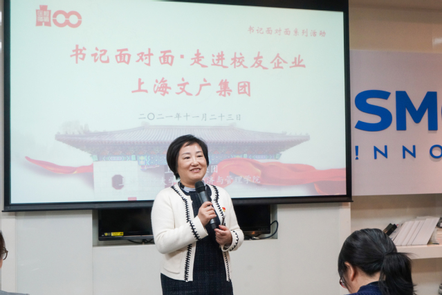 为进一步加强公共经济与管理学院师生对百年党史的理论学习与实践探究,使广大师生在党史学习中汲取更多智慧和力量,感悟党的百年奋斗重大成就和历史经验,2021年11月23日下午,公共经济与管理学院党委走进上海文广集团,以创新党课的形式学习百年党史和十九届六中全会精神。公共经济与管理学院党委书记方芳教授、公管学院党委副书记周巧、辅导员郭倩怡、校友会秘书王诗琪一起带领近30名学生参加此次活动,同上海文广集团副总裁钟璟等优秀校友进行对话交流,校纪委副书记杨晖、国际教育学院直属党支部书记林华观摩了本次党课。公管学院校友会会长杨玉成 、秘书长邬咏梅 、副会长兼职业发展中心主任崔建平多位校友党建辅导员也共同出席。本次活动由方芳书记主持。