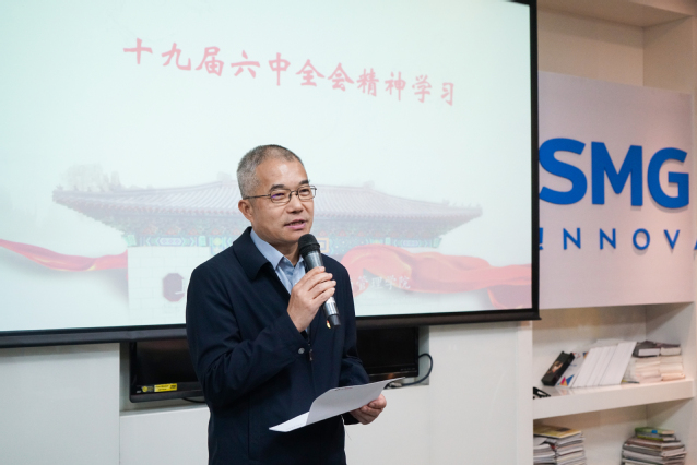 接着,上海文广集团副总裁钟璟校友也就十九届六中全会精神的学习,交流了自己的心得体会。她认为建党100周年是一件具有重大意义的里程碑事件,十九届六中全会一方面总结建党百年来取得的成就与经验,在党内凝聚共识,同时另一方面也体现出这100年历史中中国共产党的不易。她说,“此次会议并不仅仅是总结中国共产党所取得的历史成就,更重要的是在于破解新的问题,提供给世界更多的解决方案”。钟璟校友将100年历程比喻成一场接力跑,接力跑道中既有直道也有弯道,但是每一代接力者接棒时都清楚地知道自己这一代所肩负的时代使命并且负责任地跑完了属于自己这一代的路程,完美地将手中的接力棒传递给下一代。