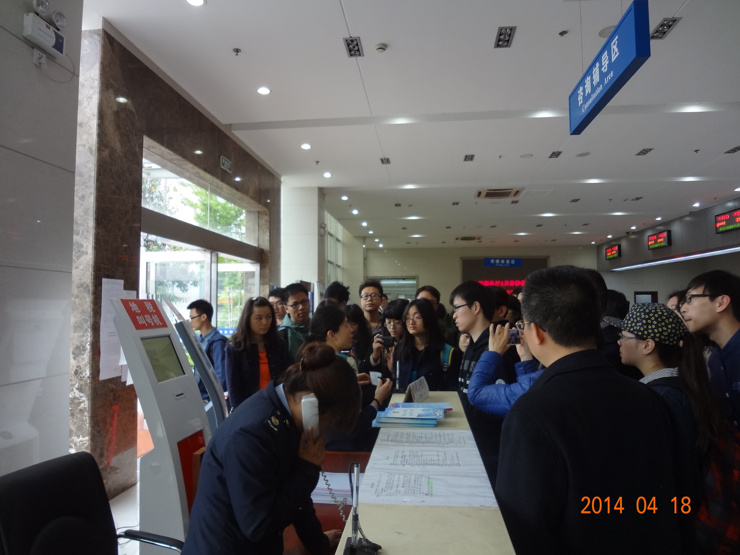 利用校外实践基地开展现场教学实践活动是我校税务硕士培养的重要特色之一。4月18日清晨,我校公共经济与管理学院54名2013级税务硕士生在老师们的带领下,乘坐高铁赴江苏省常州市参加了为期一天的现场教学实践日活动。此次活动得到了常州市行政服务中心和常州市地方税务局的大力支持。