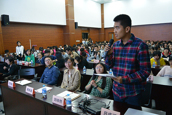 围绕该主题,来自不同学院的四位学生嘉宾及现场学生分别就我校加强通识课程建设的顶层设计、通识课程资源及其网络平台建设、第二课堂学分认定的作用发挥以及健全人格的培养等方面与刘兰娟副校长进行了深入的互动交流。刘兰娟副校长还以平实亲切的语言,结合她自身的求学和工作经历,对同学们的学习和发展提出了殷切期望,给同学们以深刻的启迪。