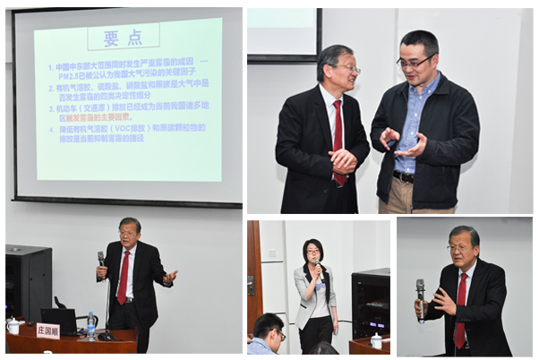 庄国顺教授从近年我国中东部大范围同时发生严重雾霾的现象谈起,指出PM2.5已被公认为我国大气污染的关键因子。在此基础上,他深入浅出地介绍了雾霾的成因,即大气中是否发生雾霾的四类决定性组分——有机气溶胶、硫酸盐、硝酸盐和黑碳。