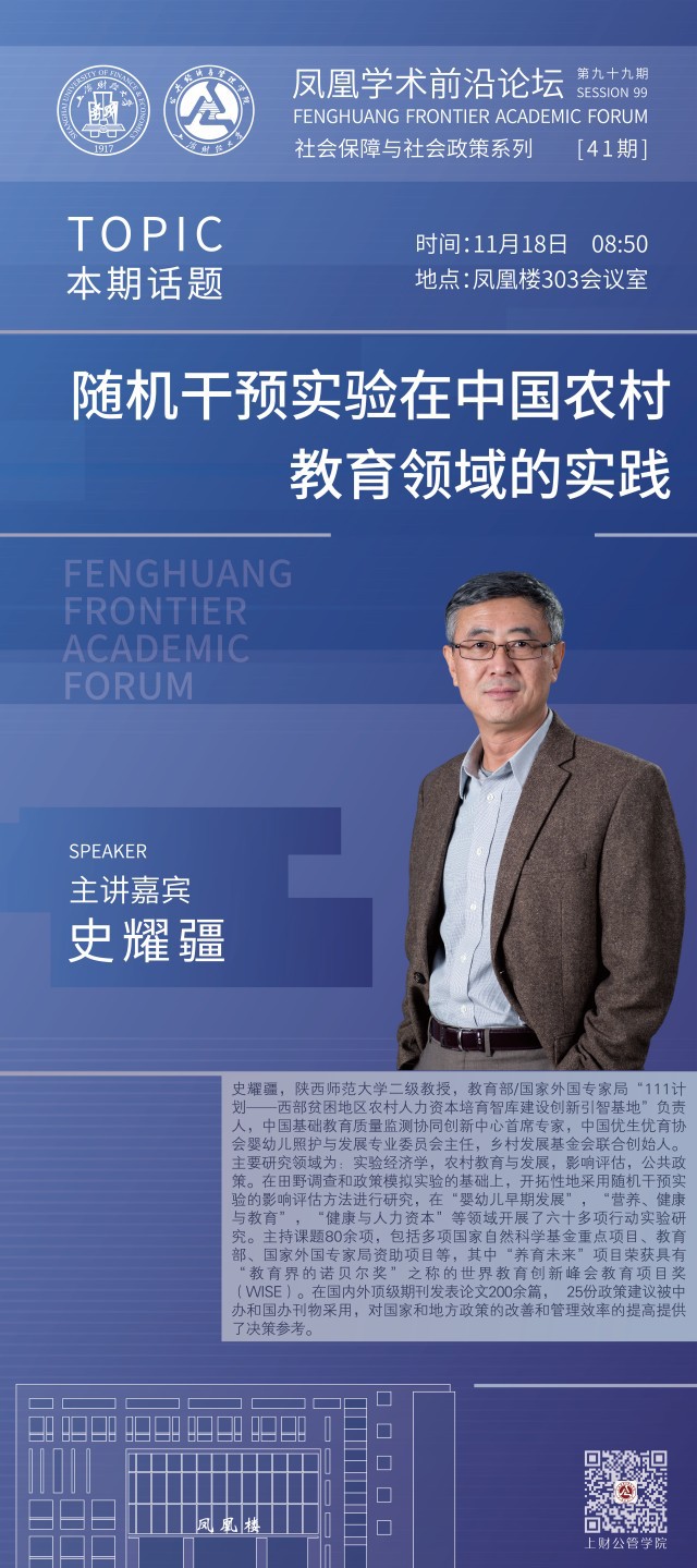 凤凰学术前沿论坛(第九十九期):随机干预实验在中国农村教育领域的实践