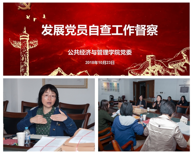 2018年10月23日下午,由校党委组织部副部长郑继红、经济学院党委副书记金晓茜与经济学院专职组织员刘伟组成的党员发展督查组到公共经济与管理学院督查发展党员自查工作,院党委书记方芳、党委副书记周巧及全体辅导员参加了督查工作会。
