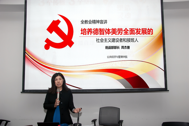 2018年10月30日下午,公共经济与管理学院邀请了校“全国教育大会精神”理论宣讲团成员周杰普老师到学院作了题为《培养德智体美劳全面发展的社会主义建设者和接班人》的宣讲报告,学院教师近40余人聆听了报告。