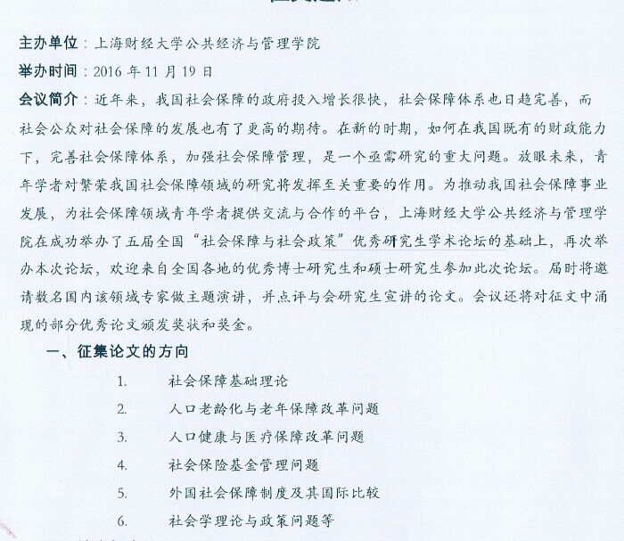 第六届社会保障研究生论坛征文通知